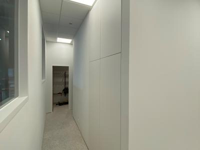 Voor een fitnessruimte in een kantoorgebouw plaatsten we tegen de wanden inbouwkasten in witte panelen. De behandeling met FENIX Antifinger Print houdt het oppervlak lang schoon. Een hygiënische en onderhoudsvriendelijke keuze.